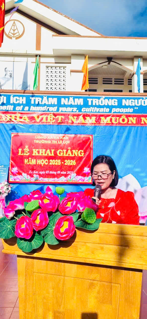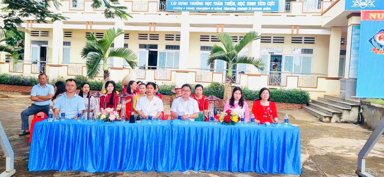Về dự với buổi lễ, nhà trường vinh dự đón tiếp lãnh đạo UBND xã Ea Kar, Ban đại diện Hội cha mẹ học sinh, cùng sự hiện diện của cô Trần Thị Hồng Lan – Bí thư Chi bộ, Hiệu trưởng nhà trường. Toàn thể cán bộ, giáo viên, nhân viên trong nhà trường cùng hơn 656 em học sinh đã có mặt đông đủ, tạo nên bầu không khí trang trọng, rộn ràng và đầy hứng khởi.